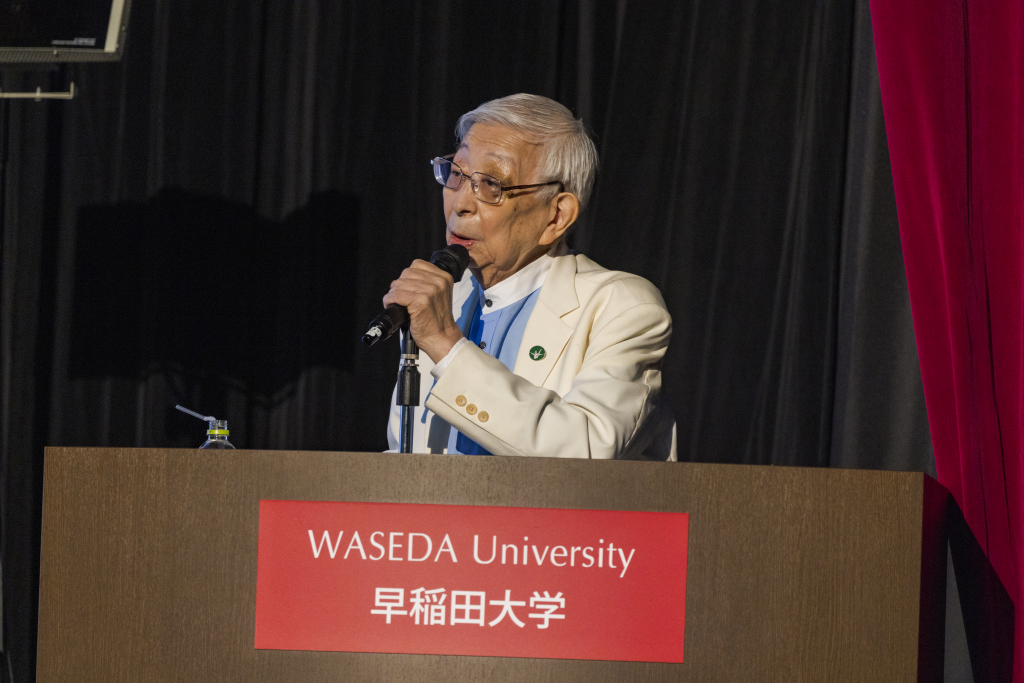 早稲田大学は2025年11月6日、創立150周年記念事業の一環として、「日本被団協 ノーベル平和賞受賞 記念講演会」を開催。ノーベル賞を受賞した日本原水爆被害者団体協議会(以下、「日本被団協」)の田中聰司氏(1967年第一政治経済学部卒業)、濱住治郎氏(1969年第一政治経済学部/1971年教育学部卒業)を招致し、大隈記念講堂大講堂にて、「原爆投下から80年~早稲田から紡がれたノーベル平和賞への軌跡とメッセージ~」と題した基調講演を実施しました。