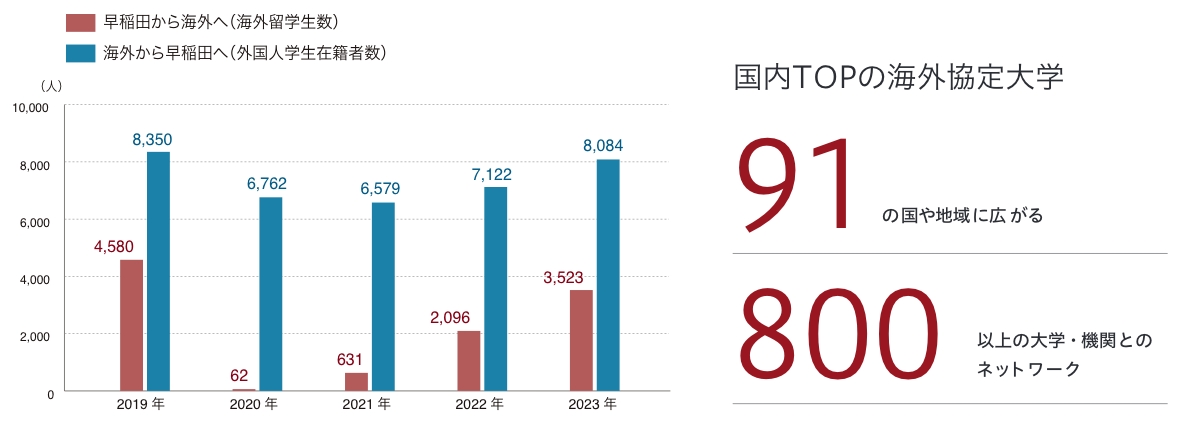- 早稲田に入学する学生の20%は海外からの留学生を受け入れる