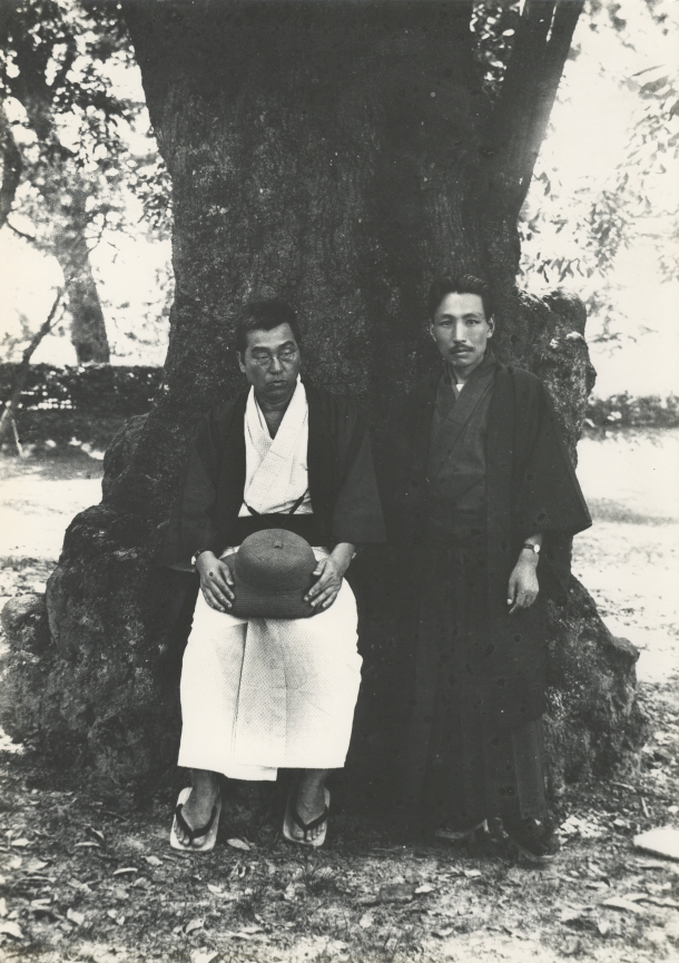 「樹木の前に立つ小川晴暘と會津八一」 大正時代