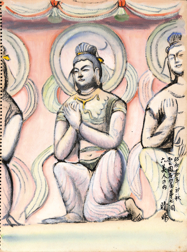小川晴暘「六美人の内(第七窟主室南壁中央)」 昭和14年(1939)