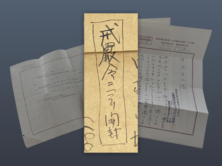 1936年の二・二六事件後の戒厳下、丸善株式会社早稲田出張所から中西正二宛に送られた封書のウラ面には、「戒厳令ニヨリ開封」と手書きされていました。