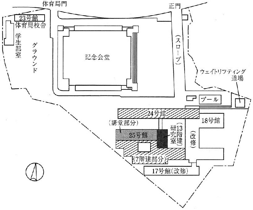 文学部は従来本部キャンパス図書館脇の四号館を使用していたが、高等学院が上石神井校地に移転した跡、すなわち戸山町四十二番地に、文学部専用の新校舎群が建設された。三十五年十二月八日起工式挙行、三十七年四月三日に完成し、第一、第二文学部ともここへ移った。二五号館は十一階(水槽・機械室の上二層を加えると十三階)最高高度三七・二三メートルの研究室棟を中心とし、これと直交する七階建の研究室棟が建てられ、これに接する一部は平屋一部二階建の大講堂棟となる。記念会堂に側面した部分には、その前庭から地上四階建の教室棟(二四号館)が建てられた。これらの建物は、改装された旧高等学院の鉄筋校舎(一八号館)や木造校舎(一七号館)と連絡するよう配置された。記念会堂前のスロープを登って教室棟の下をくぐり抜けた所は中庭の如き形となり、この中庭から直接出入りできる所に、七百人収容の前記の大講堂棟がある。また四階建の教室棟は、一階に学生食堂・学生控室・サークル部室等が設けられ、二階以上が教室となっている。以上の新築校舎の総坪数は三〇三七・七六坪である。なお、研究室棟には大学院が統合され、学部とその同系の大学院とがこのようにまとまったのは、早稲田としては最初のものであった。