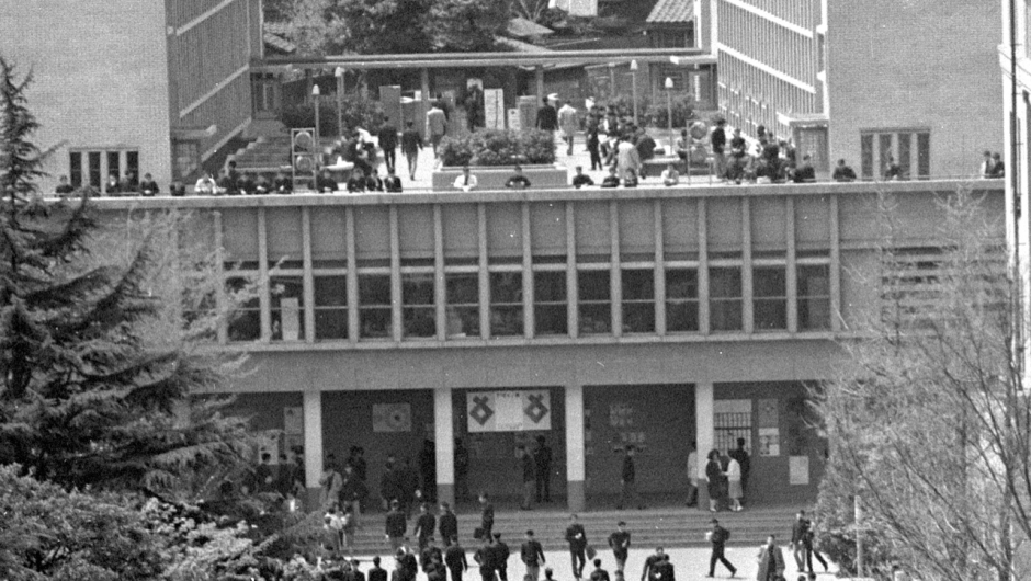 戸山キャンパス。撮影と同じ1962年4月に完成し、第一文学部・第二文学部・文学研究科が移った。