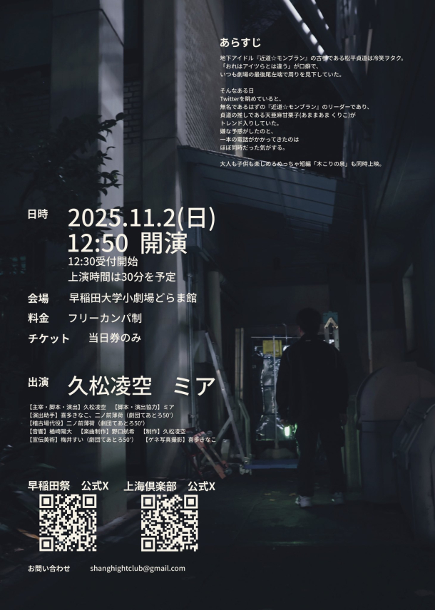 11/2 上海倶楽部盤外公演 早稲田祭どらま館企画『冷笑 -The cool smile-』
