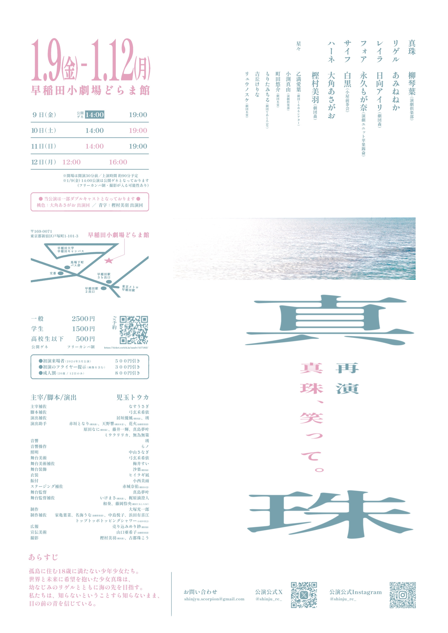 柳琴葉(演劇倶楽部)、あみねねか、日向アイリ(劇団森)、永久もが奈(演劇ユニット苹果錫侖)、白黒(小屋前茶会)、大角あさがお、樫村美羽(劇団森)、乙満愛葉(劇団くるめるシアター)、小渕真由(演劇倶楽部)、町田悠介 (劇団木霊)、もりたみちる(劇団てあとろ50’)、吉丘けりな、リュウノスケ(劇団木霊)