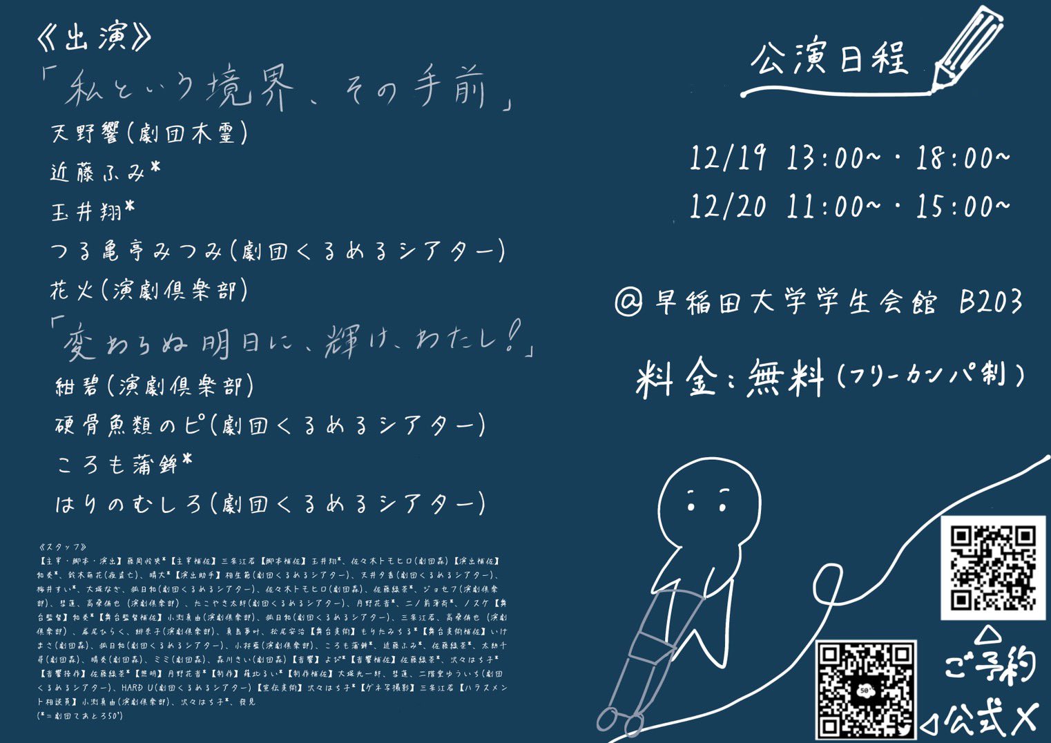 12/19-12/20 あかなし×劇団てあとろ50‘ 12月企画公演『長編『私という境界、その手前』『変わらぬ明日に、輝け、わたし!』