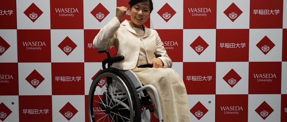 村岡桃佳さんが早稲田スポーツミュージアムに来館
