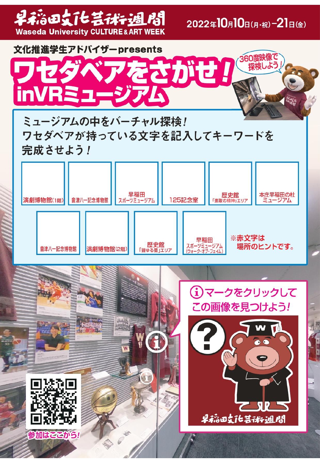 文化推進学生アドバイザーpresentsワセダベアをさがせ!inVRミュージアム(10/10~21)