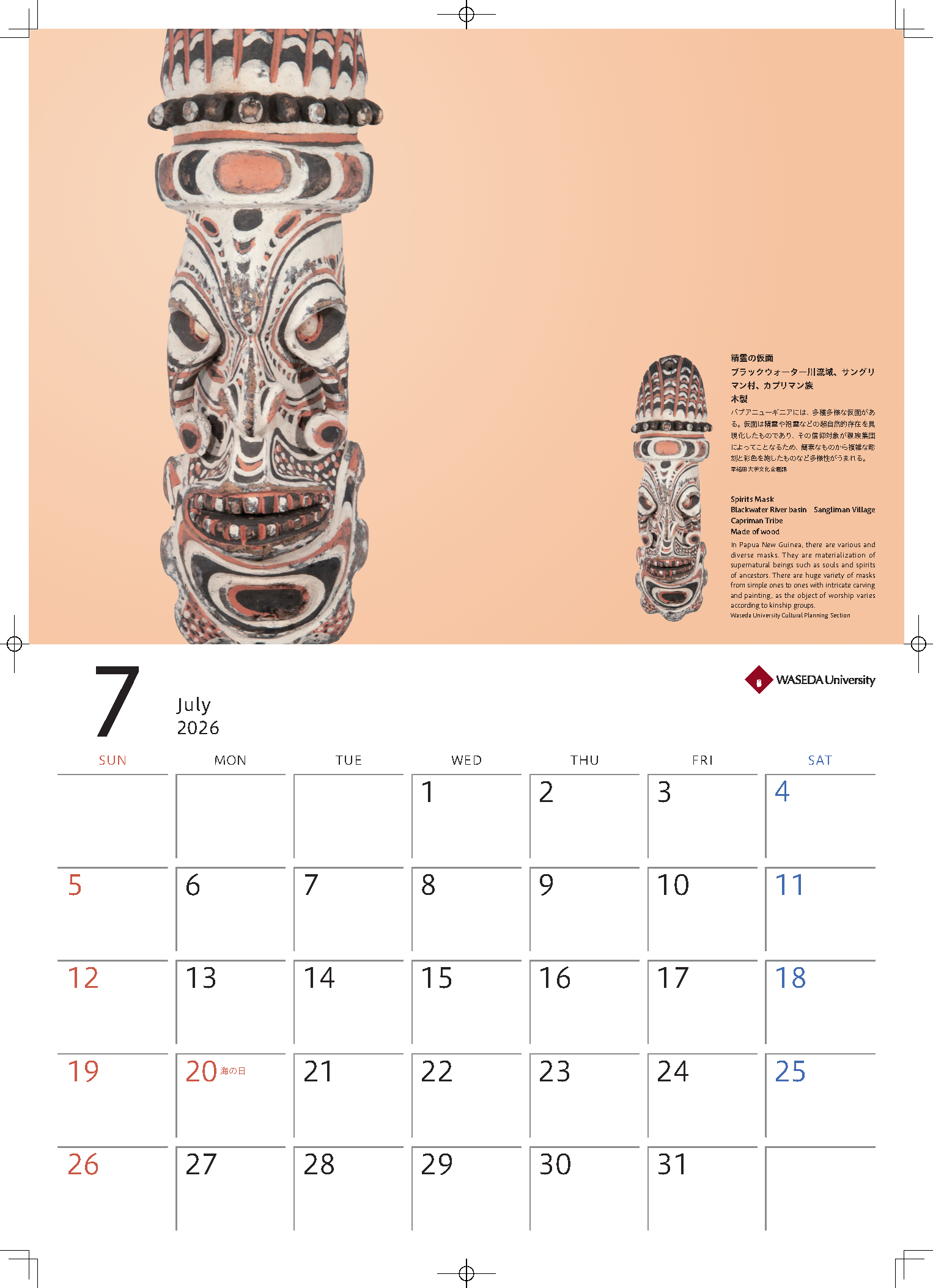 早稲田大学の文化施設および図書館が所蔵する美術工芸品や書画、博物資料などに、解説文(日本語・英語併記)を添えて紹介するカレンダーです。書き込みのできる月間スケジュールのページを組み合わせた、使いやすい大きさ(A3判)の壁かけカレンダーです。早稲田大学の貴重な文化資源の数々をお楽しみください。実家や親戚へのお土産に。また、留学先やお友達へのクリスマスプレゼントや、新年のご挨拶に最適です。