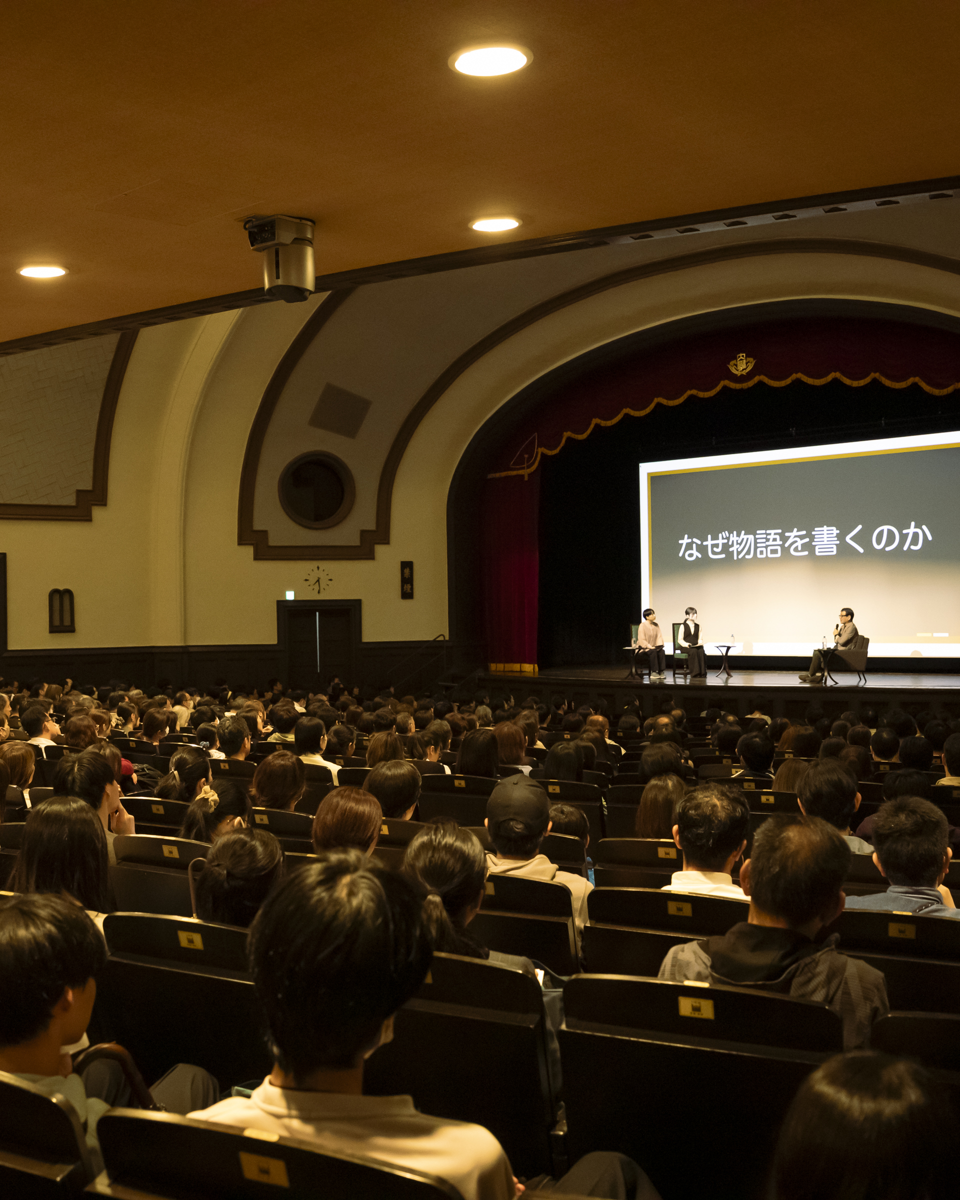 学生、教職員、卒業生、重松作品の愛読者など、多くの人々が集まった大隈記念講堂。ユーモアを交えながら、90分のイベントが進められた
