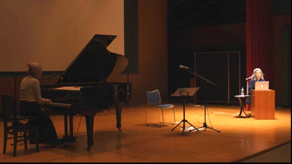 2025年11月11日(火)・12日(水)、小野記念講堂にて「多和田葉子・高瀬アキ パフォーマンス&ワークショップ」が開催されました。本企画は、ベルリンを拠点に国際的な活動を続ける作家・多和田葉子とジャズピアニスト・高瀬アキが、言葉と音楽の新たな可能性を探究する試みとして継続してきたもので、今年で16回目を迎えました。