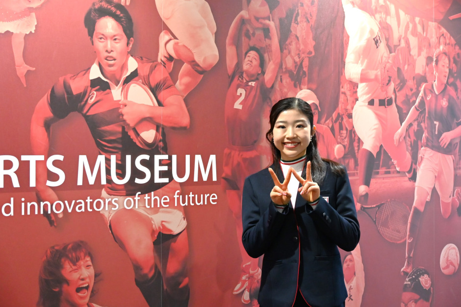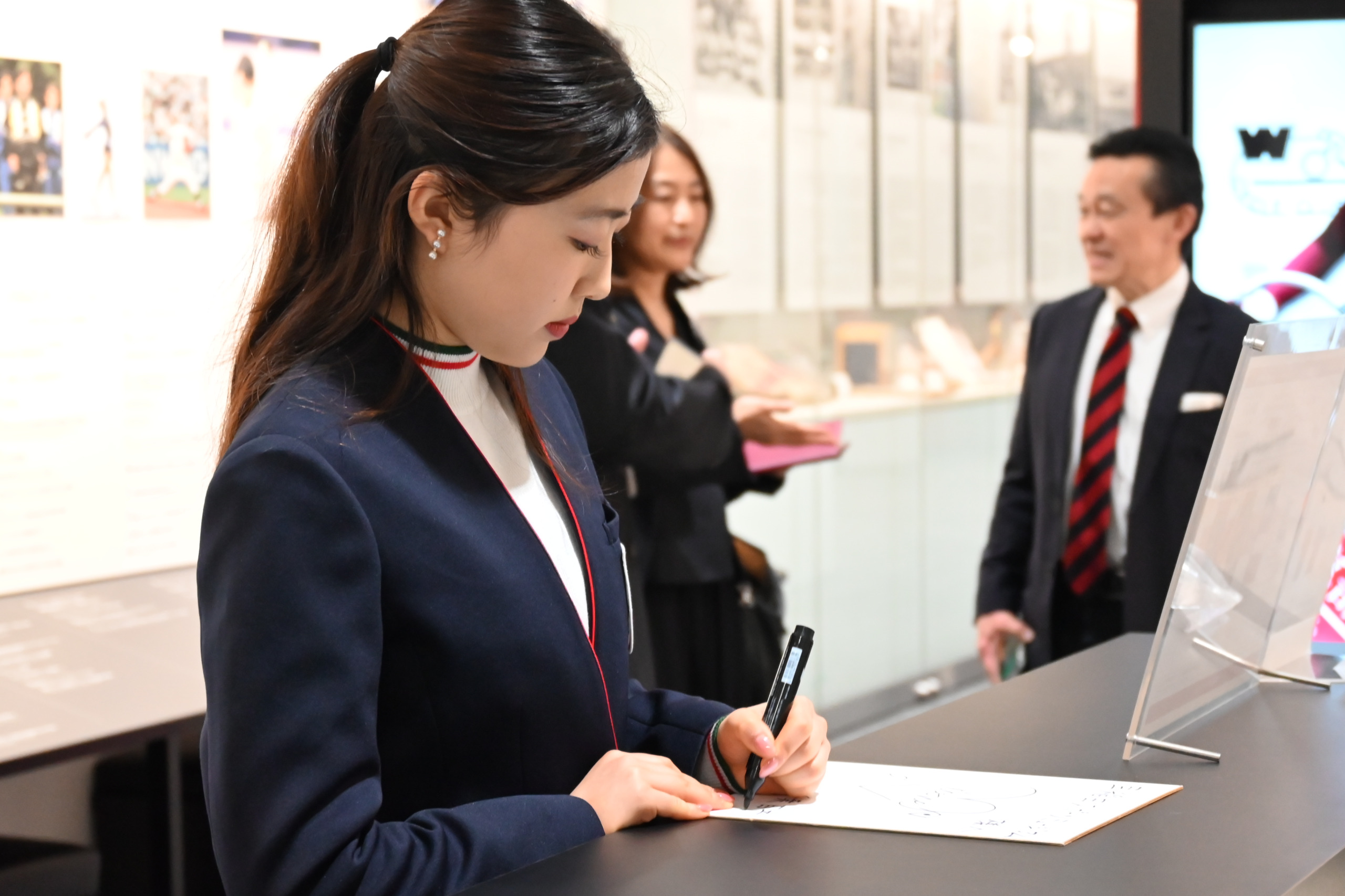 早稲田スポーツミュージアムに、ミラノ・コルティナ2026冬季オリンピック代表として初出場が決定している、フィギュアスケートの千葉百音選手(人間科学部通信教育課程2年・スケート部所属)が来館されました。