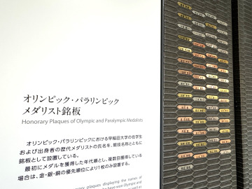 オリンピック・パラリンピックのメダリストの銘板や、出場した早稲田大学関係者の展示をしています。