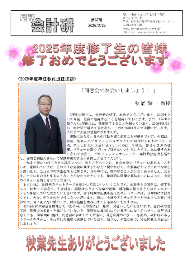 月刊会計研62号(2021年3月発行)退職教員挨拶 |