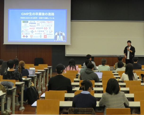 続いて、SC(Student Committee)委員長を務める上田さんから、GMPの概要や具体的な活動、そしてどのような人材を育むプログラムであるかについて、詳しい紹介がありました。