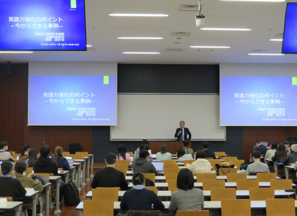 また英語系列の森田先生からは、来年度からのGMP参加に向けて、Reading, Listening, Speaking, and Writingの各分野における具体的な学習の進め方について指導をいただきました。
