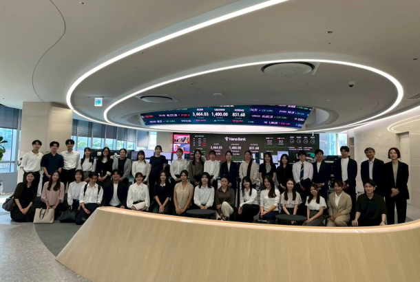 午後のHANA Bank様への訪問では、社員の方からの会社説明、学生のプレゼンテーション、それに対するフィードバックをいただきました。会社説明では、どのように世界規模の金融市場を担う事業を行っているのかについて詳しく説明をいただきました。また、社員の方々が働く様子とともに、実際のトレーディングルームも見学させていただき、とても貴重な機会となりました。学生のプレゼンテーションでは、「Hana Bankが日本において販売実績を向上させ、持続的成長を実現するためにはどのような戦略を採用すべきか」というテーマで発表を行いました。質疑応答では、海外の銀行市場や今後の戦略、海外でのビジネス実務について詳しく教えていただきました。