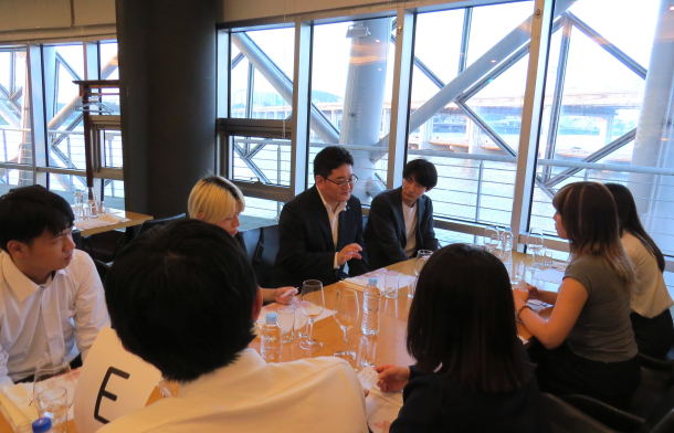 キャリアフォーラムでは、学生6名と校友2名でテーブルに分かれて座り、食事を取りながら親しみやすい雰囲気の中で交流を深めることができました。グローバルなキャリアを目指すGMP生にとって、韓国で実際に働いている校友の方々から、お仕事の内容や海外生活でのご苦労・楽しみを直接伺える機会は非常に貴重です。各テーブルではGMP生が積極的に質問を投げかけ、校友の皆様が座席を移動しながらお話してくださいました。多くの校友から、今後のキャリアを考えるうえで大変勉強になるお話を伺うことができました。
