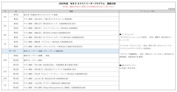 | 定員 | 最大25名 ※ビジネススクール正規生と合同で、50名程度で授業を実施します。 |