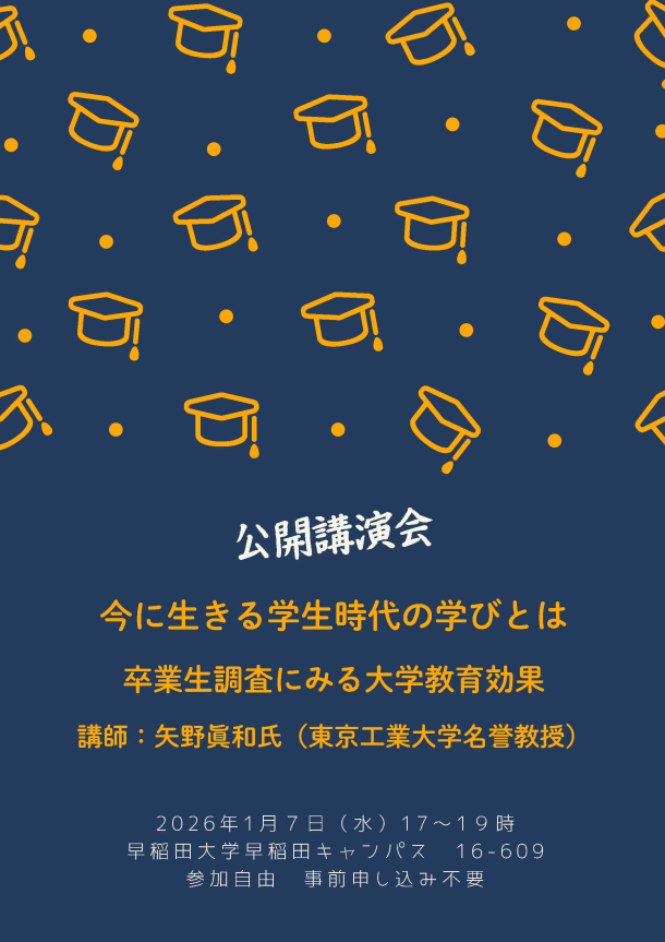 - 公開講演会:今に生きる学生時代の学びとは―卒業生調査にみる大学教育効果 1/7(水)