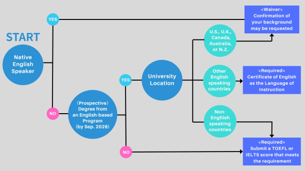 I obtained an English-based degree at a university located in Japan. Am I eligible for an exemption from submitting English proficiency test scores?