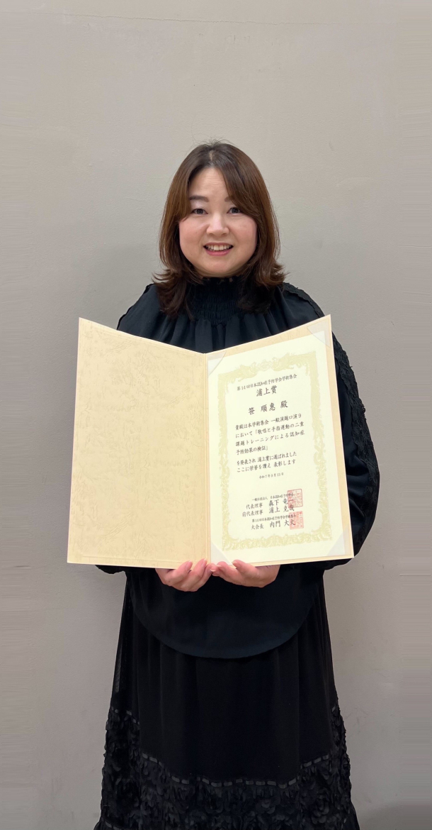 2025年9月13日(土)に都市センターホテルで行われた日本認知症予防学会の第14回日本認知症予防学会学術集会にて、早稲田大学大学院人間科学研究科リハビリテーション身体科学(鈴木里砂)研究室修士1年の笹順惠さんが「浦上賞」を受賞しました。