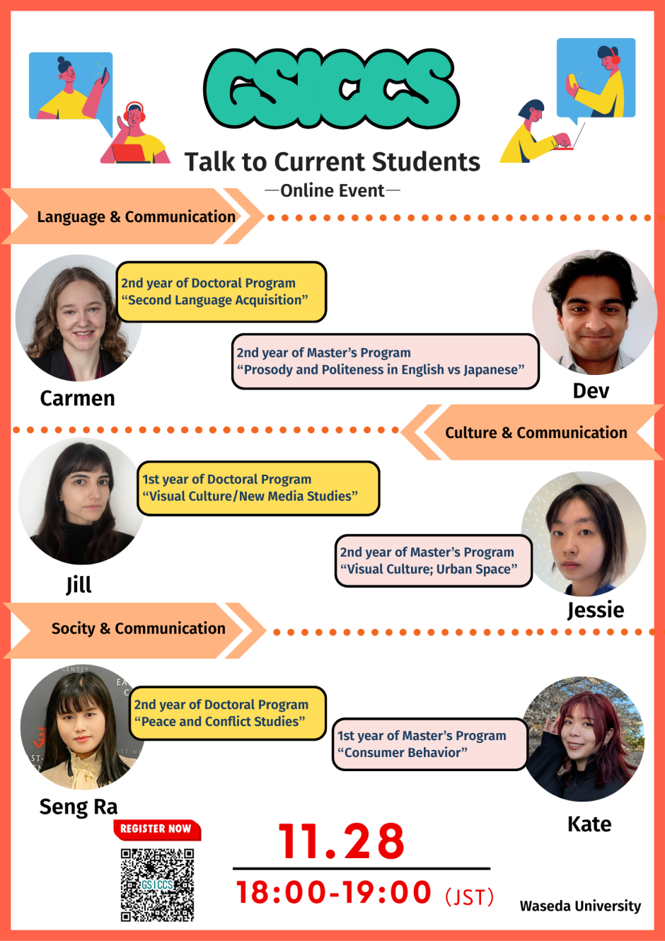 Graduate School of International Culture and Communication Studies (GSICCS) will have online session on November 28 (Fri), 2025.