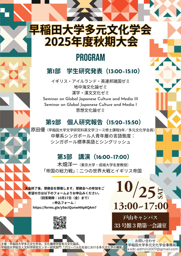 お問い合わせは早稲田大学多元文化学会事務局([email protected])まで。