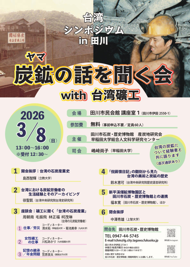 主催:田川市石炭歴史博物館、産炭地研究会、早稲田大学総合人文科学研究センター