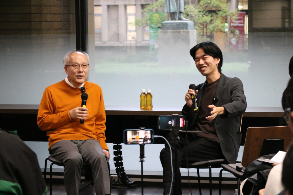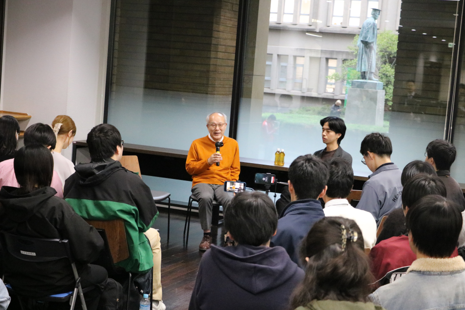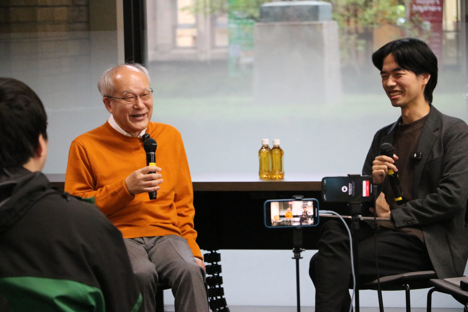 記念すべき第1回(憲法学者はいかに本と出会うのか?)のゲストは長谷部恭男先生。本学法学研究科の院生・植田将暉さんが聞き手を務め、本にまつわる長谷部先生のエピソードを存分にご披露いただきました。