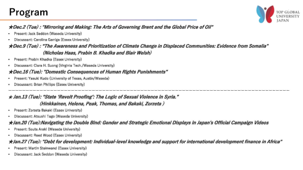 【対象】 早稲田大学学部生、大学院生、教職員、エセックス大学関係者