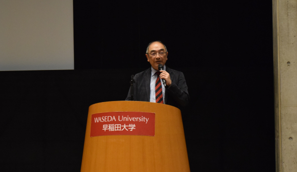第1セッションでは、清水和巳教授(政治經濟學會 研究大会委員)による開会の辞に続き、鎮目雅人学部長(政治經濟學會長)による式辞、稲門政経会会長 内山その様より来賓祝辞を賜りました。