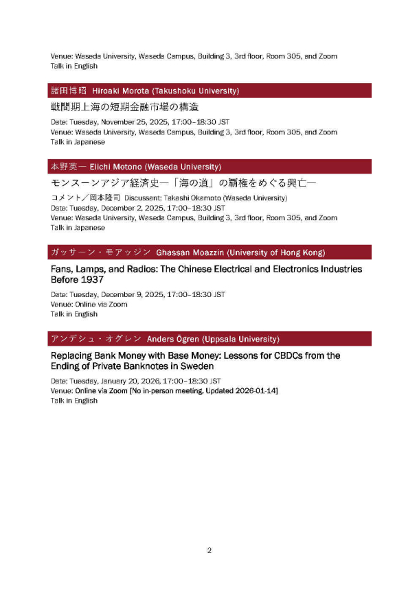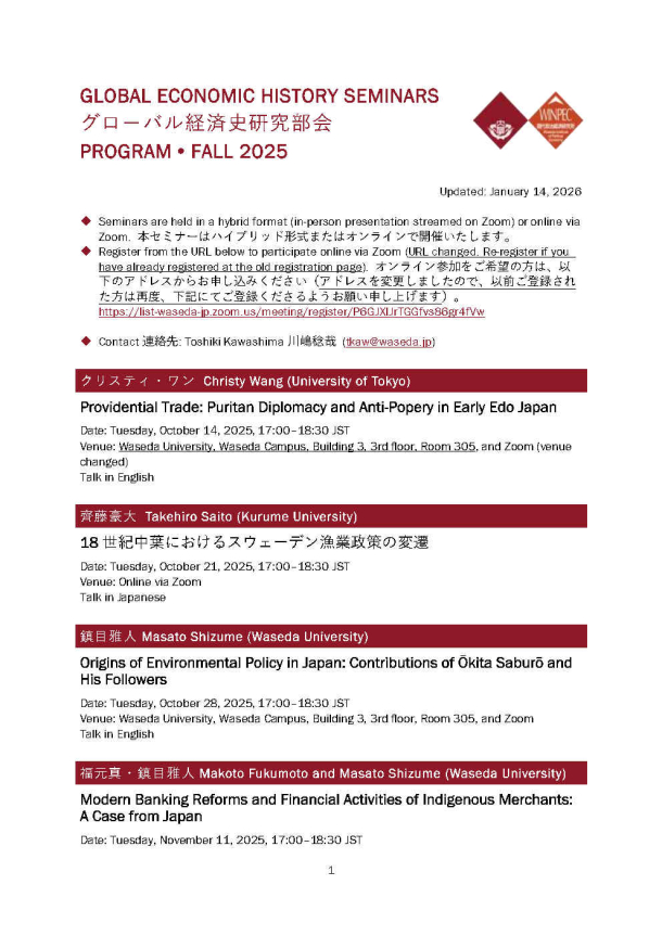 2025 年度秋学期グローバル経済史研究部会 Global Economic History Seminar Fall Semester 2025