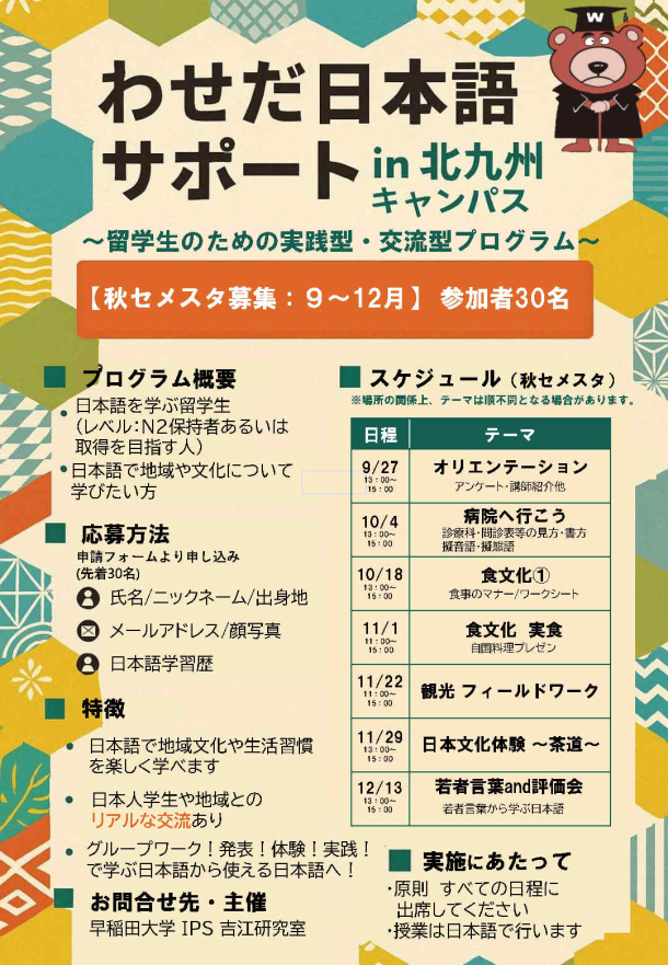 「わせだ日本語サポート」秋セメスター概要/ Waseda Japanese Support – Fall Semester Overview
