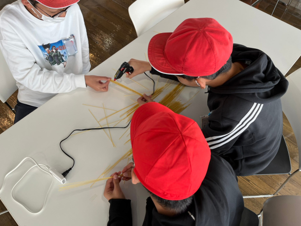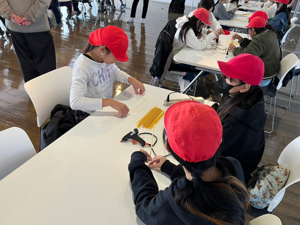 見学に加えて、パスタを用いて橋を制作するワークショップにも参加され、創造力や問題解決力、協働性を育む良い機会となりました。
