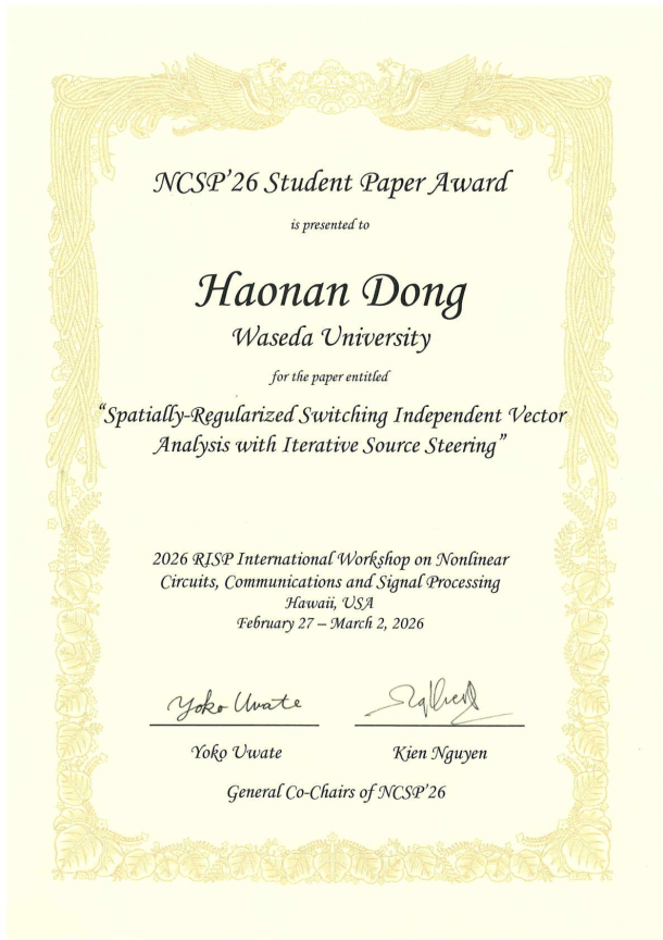 - 賞名 : NCSP’26 Student Paper Award