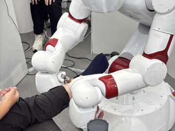 AIREC の両腕関節の柔らかさが柔軟に変えられることを、来場者に触れていたくことで体験いただき