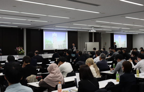 開会の挨拶では、後藤 春彦先生(早稲田大学副総長)、野城 智也(東京都市大学学長)先生、戸川 望(早稲田大学理工学術院長)先生より、京都市大学・早稲田大学・共同原子力専攻の開設(2010年4月)経緯や意義、原子力の必要性や、人材育成の重要性等が紹介された。