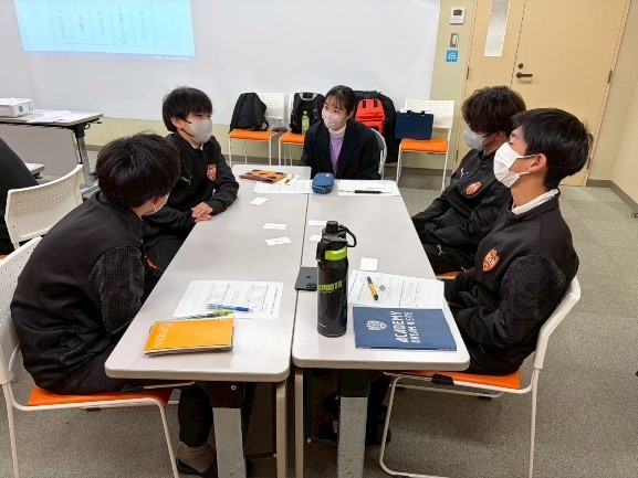 研修では、藤井研究室の萩原彩葉さんと新美育歩さんが進行を担当し、「日本代表選手が身につけているバリュー」や「チームが大切にしているバリュー」などを題材に、選手同士が活発に意見を交わしました。なお、清水エスパルスの育成世代を対象とした本研修は、今回を含めてこれまでに4回実施されています。今後も両研究室では、育成世代を中心に、道徳教育の知見を応用したスポーツ・インテグリティ教育プログラムの開発と実践を継続し、スポーツ現場への普及と定着を目指していきます。