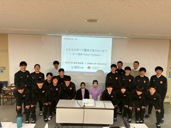 静岡大学藤井研究室(教育学部・准教授:藤井 基貴)と早稲田大学安永太地(スポーツ科学学術院・助教)は、Jリーグ・清水エスパルスの育成世代であるU-14選手16名を対象に、両研究室が共同開発したカード教材「Value Thinkers」を用いたワークショップ型研修を実施しました。