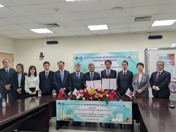 2026年2月2日、台湾・高雄市の高雄医学大学(Kaohsiung Medical University)にて、早稲田大学スポーツ科学学術院と高雄医学大学運動医学科(Department of Sports Medicine)が学術交流協定(MOU)を締結しました。