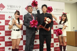なお、早稲田大学応援部チアリーダーズが中村選手を訪問し、激励のエールを送りました。
