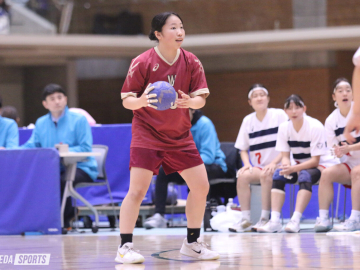 ナイスセーブで早大ゴールを守るGK古屋萌杏主将(スポーツ科学部4年)