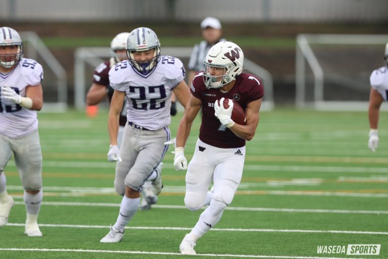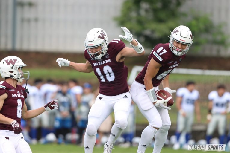 6月にしては過ごしやすい涼しさのアミノバイタルフィールド。三連敗中の早大BIG BEARSは関東1部リーグBIG8の駒大との一戦に臨んだ。フレッシュなメンバーが多く出場した早大。試合の入りに課題があった早大だが、最初のオフェンスドライブでRB松村拓磨(スポ4=埼玉・昌平)がTDを決めると、その後も得点を積み重ねる。ディフェンスでもLB石黒哲(政経3=東京・早大学院)のロスタックルなど随所に好プレーが飛び出し、54-24で勝利を収めた。→続き・コメントを読む