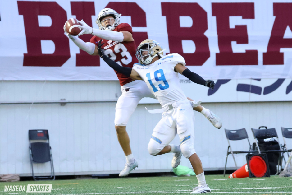 連日の猛暑から一転、秋の始まりを告げるような涼しさを感じられる中、関東学生秋季リーグ戦(リーグ戦)の第3節・東大戦が行われた。開幕2連勝を達成し、好調を維持してこの試合を迎えた両校。前半は得点の応酬となるも、攻撃陣の活躍により、早大リードで折り返す。後半も着実に得点を重ねた早大BIG BEARSが35-23で勝利を収めた。→続き・コメントを読む