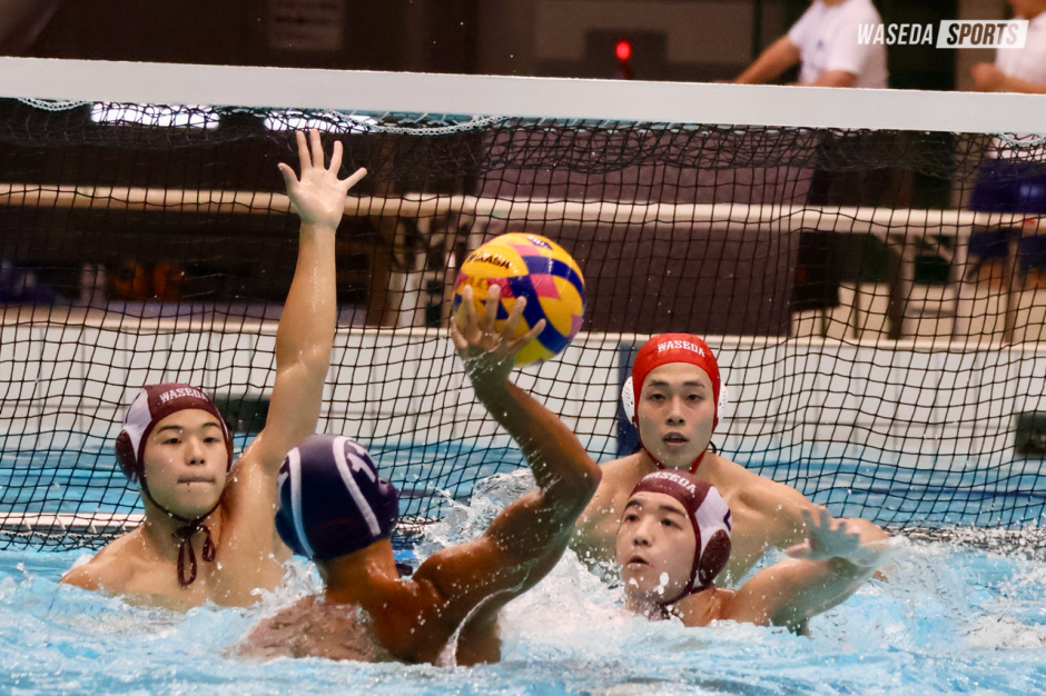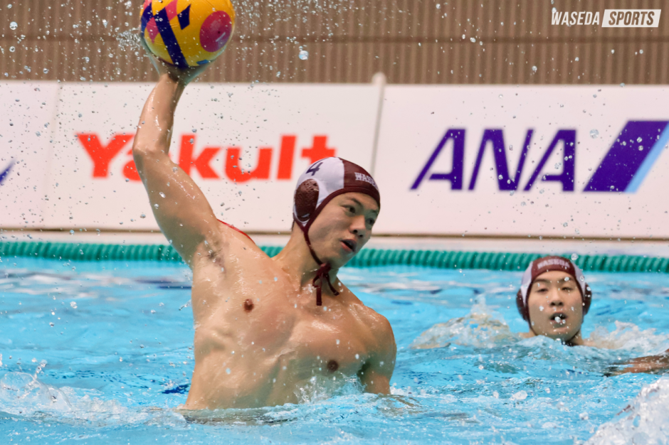 第101回日本学生選手権水泳競技大会水球競技。前日の成蹊大戦を制し、準々決勝へと駒を進めた早大。迎える相手は、同じ関東1部リーグの中央大学。勝負の山場となった一戦は、序盤から一進一退。前半を8―8の同点で折り返すと、後半も激しい点の取り合いの白熱した接戦に。互いに譲らぬ攻防の末、試合は、残り1分になってもなお同点の緊迫した展開が続いた。しかし、残り30秒で、痛恨の失点。最後まで攻め続けたものの、あと一歩届かず、14―15で惜しくも敗れ、ベスト8で今大会を終えた。→続き・コメントを読む