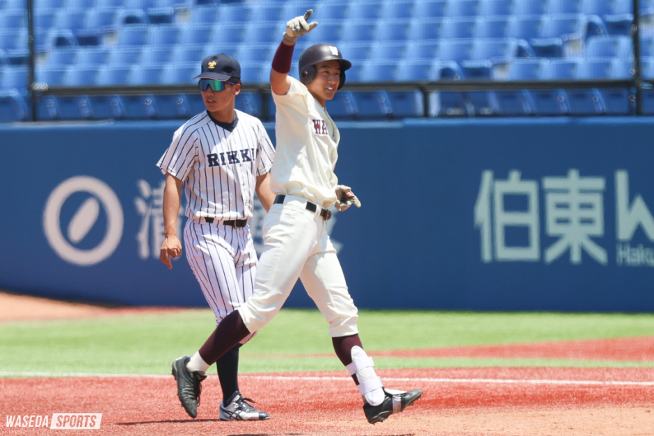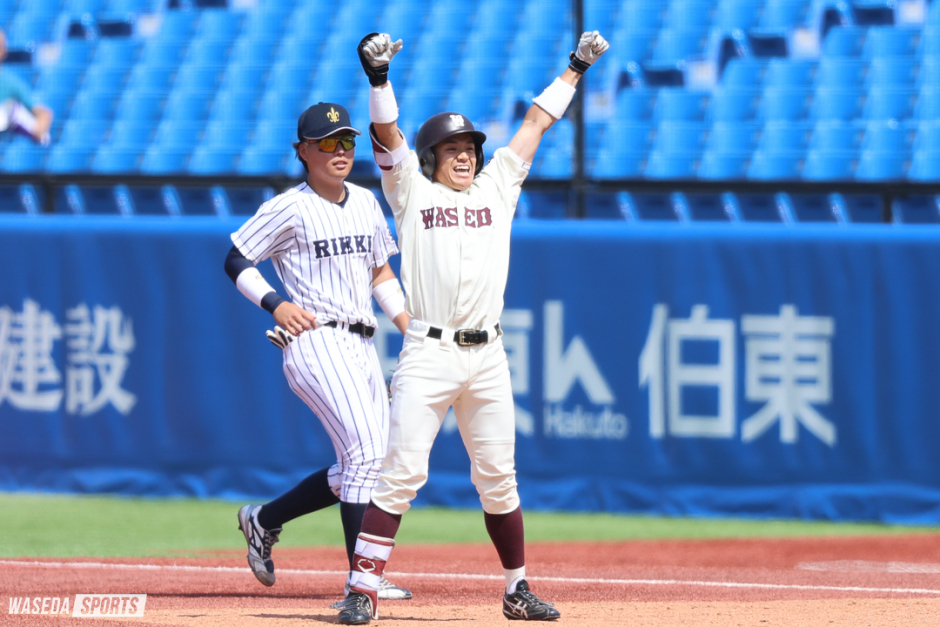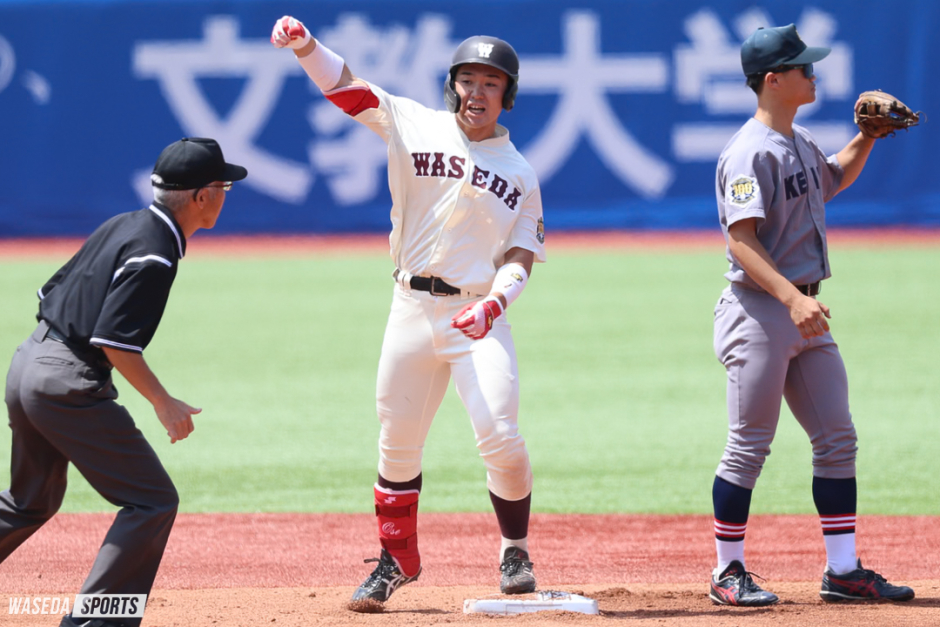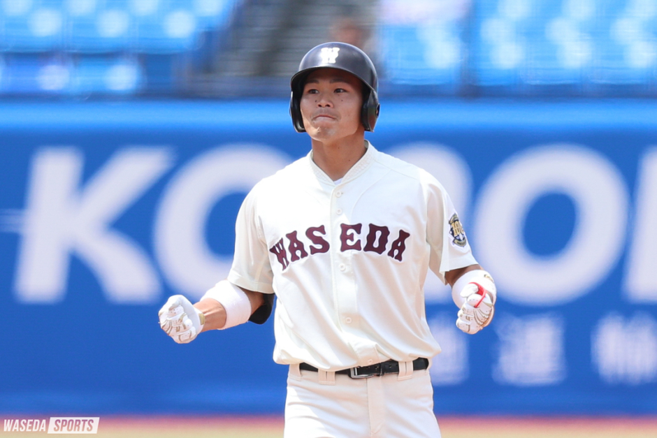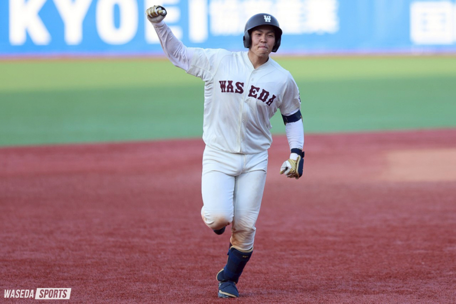 2003(平15)年12月17日生まれ。178センチ、80キロ。東京・早大学院出身。商学部4年。全早稲田戦では加藤雅樹選手(令2社卒=現東京ガス)のバックスクリーンへの本塁打が印象的だったそうですが、OBの選手たちに積極的に話しかけることはできなかったそうです。