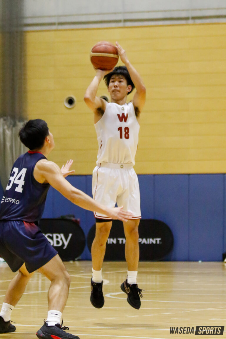 関東大学リーグ戦(リーグ戦)で首位を走り、現在10連勝中と旋風を巻き起こしている早大。迎えた第13戦目は中大と対戦した。試合は序盤から拮抗した展開。早大は得意のスリーを徹底マークされ、流れに乗れない。それでも、F堀陽稀副将(スポ4=京都・東山)やF三浦健一(スポ3=京都・洛南)がドライブで得点を量産し、早大に勢いをもたらす。そして第4Q残り59秒、1対1から三浦が試合を決定づけるタフなレイアップを決め切り、89-84で早大が勝利。リーグ戦11連勝を飾った。→続き・コメントを読む