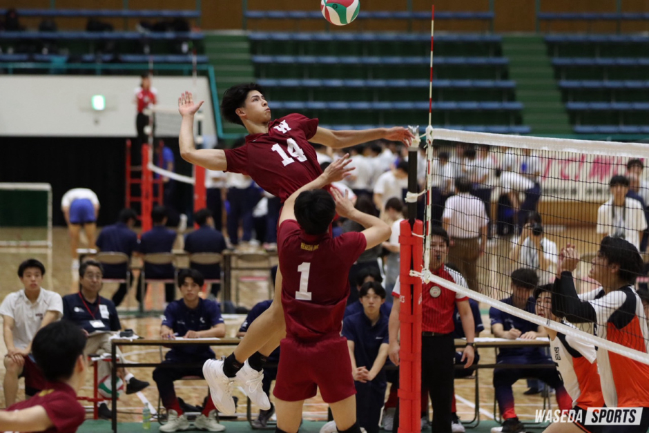 OP川野琢磨(スポ1=東京・駿台学園)のスパイク