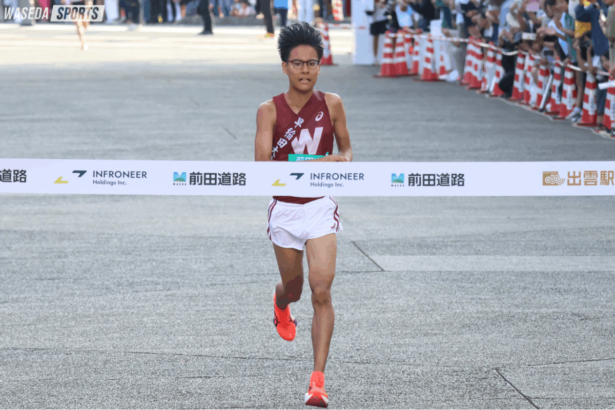 10月13日、三大駅伝の開幕戦となる出雲全日本大学選抜駅伝(出雲)が開催された。早大はトラックシーズンで圧巻の結果を残した山口智規駅伝主将(スポ4=福島・学法石川)や工藤慎作(スポ3=千葉・八千代松陰)に加え、1年生3人を加えた強力な布陣で15年ぶりの頂点に挑んだ。レースは山口智が圧巻の9人抜きで区間賞を獲得するなど、2区以降は常に上位争いを展開。優勝には届かなかったが、堂々の2位を獲得。強い臙脂(えんじ)の姿が久しぶりに出雲路に帰ってきた。→続き・コメントを読む